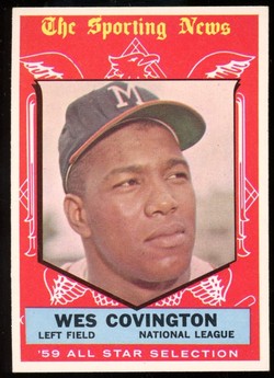 1959 Topps Baseball High Number All-Star Card (#565) of Former Milwaukee Braves Outfielder, Wes Covington. Card is EX-MT+ with some light corner wear and no creases. No writing, pin holes, tape stains. See scan for centering.