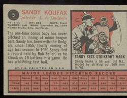1962 Topps Baseball #005 Sandy Koufax Los Angeles Dodgers HOF