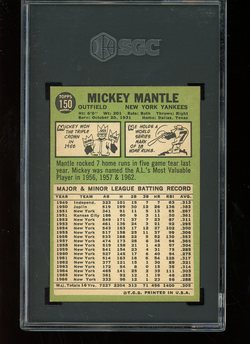 1967 Topps Baseball #150 Mickey Mantle SGC 7.5 New York Yankees HOF