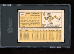 1963 Topps Baseball High Number Card (#540) of Pittsburgh Pirates Hall-of-Fame Outfielder, Roberto Bob Clemente. Card is professionally graded 7 NM (Near Mint) by SGC. .