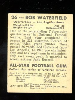 1948 Leaf Football #026 Bob Waterfield Rookie Rams HOF - Black Lettering