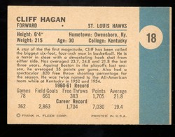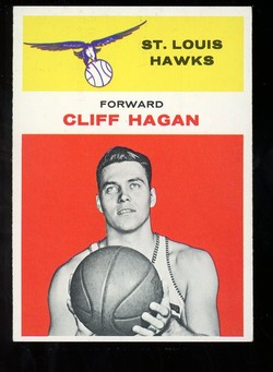 1961 Fleer Basketball Card (#18) of former St Louis Hawks Hall-of-Fame Forward, Cliff Hagan. Card is EX-MT with some corner wear and no creases. See scan for centering.