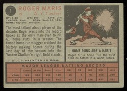 1962 Topps Baseball #001 Roger Maris New York Yankees