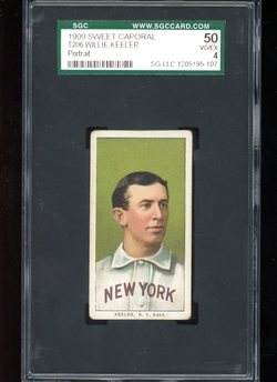 1909 T206 Sweet Caporal Cigarettes Baseball Card (Portrait - 150 Subjects / Factory 25) of New York Highlanders / Baltimore Orioles Hall-of-Famer, Wee Willie Keeler. Card is professionally graded 4 VG-EX (Very Good to Excellent) by SGC.