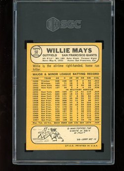 1968 Topps Baseball #050 Willie Mays SGC 5.5 San Francisco Giants HOF