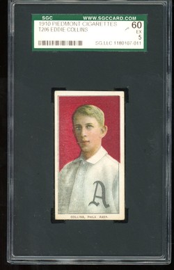 1909 T206 Piedmont Cigarettes (350 Subjects Factory 25) Baseball Card of Philadelphia A's Hall-of-Fame 2nd Baseman, Eddie Collins. Card is professionally graded 5 EX (Excellent) by SGC.