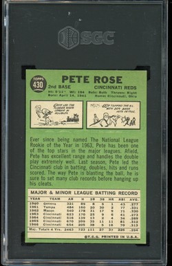 1967 Topps Baseball Card (#430) of former Cincinnati Reds All-Star, Pete Rose. Card is professionally graded 6.5 EX-MT+ (Excellent to Mint Plus) by SGC.