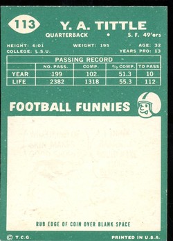 1960 Topps Football #113 YA Tittle San Francisco 49'ers HOF