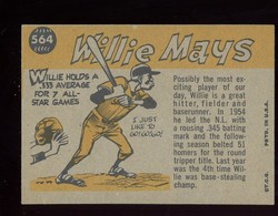 1960 Topps Baseball All-Star High Number Card (#564) of San Francisco Giants Hall-of-Fame Outfielder, Willie Mays. Card is EX- with some corner wear and a corner crease in the lower right. No writing, pin holes, tape stains. See scan for centering.