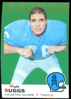 1969 Topps Football Card (#118) of former Houston Oilers Tackle, Walt Suggs. Card is EX+ with some corner wear and no creases. No writing, pin holes, tape stains. Small ding in the upper right corner. See scan for centering.
