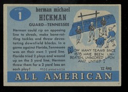 1955 Topps All-American Football #001 Herman Hickman Rookie Tennessee