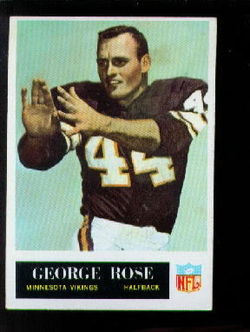 1965 Philadelphia Gum Co. Football Rookie Card (#109) of former Minnesota Vikings Running Back, George Rose.