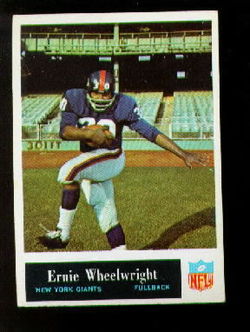 1965 Philadelphia Gum Co. Football Rookie Card (#124) of New York Giants Running Back, Ernie Wheelwright.