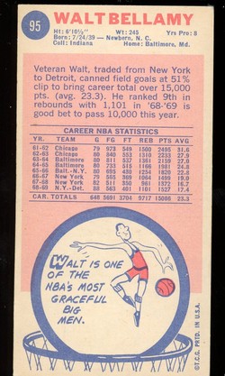 1969 Topps Basketball #095 Walt Bellamy Detroit Pistons HOF