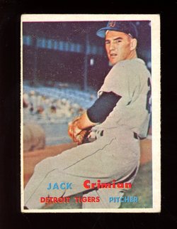 1957 Topps Baseball Scarce Mid Series Card (#297) of Former Detroit Tigers Pitcher, Jack Crimian. Card is VG-EX with some corner wear/ corner creases. No writing, pin holes, tape stains. See scan for centering