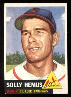 1953 Topps Baseball High Number Card (#231) of former St Louis Cardinals Shortstop, Solly Hemus. Card is EX-MT with some corner wear and no creases. No writing, pin holes, tape stains. See scan for centering.