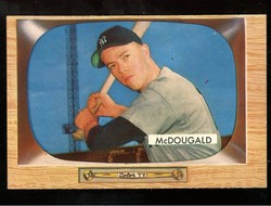 1955 Bowman Baseball Card (#9) of former New York Yankees Star Infielder, Gil McDougald. Card is EX-MT+ with some corner wear and no creases. No writing, pin holes, tape stains. See scan for centering.