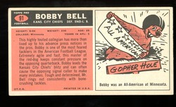 1965 Topps Football Short Print Card (#89) of former Kansas City Chiefs Hall-of-Fame Defensive End, Bobby Bell.