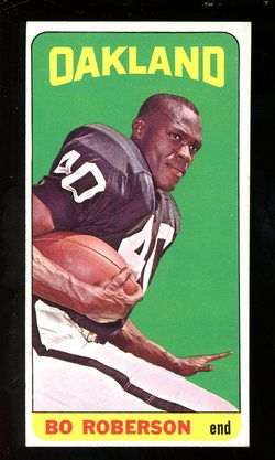 1965 Topps Football Short Print Card (#149) of former Oakland Raiders Wide Receiver, Bo Robertson.