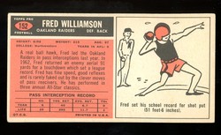 1965 Topps Football Short Print Card (#152) of former Oakland Raiders Defensive Back, Fred Williamson.