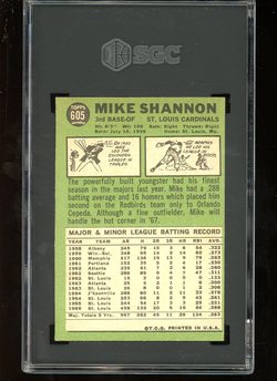 1967 Topps Baseball #605 Mike Shannon SGC 5 St Louis Cardinals High # SP