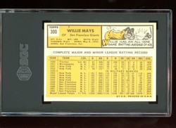 1963 Topps Baseball Card (#300) of San Francisco Giants Hall-of-Fame Outfielder, Willie Mays. Card is professionally graded 6.5 EX-MT+ (Excellent to Mint Plus) by SGC.