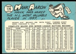 1965 Topps Baseball #170 Hank Aaron Milwaukee Braves HOF