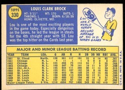 1970 Topps Baseball #330 Lou Brock St Louis Cardinals HOF