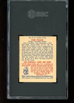 1949 Bowman Baseball #027 Bob Feller SGC 4 Cleveland Indians HOF