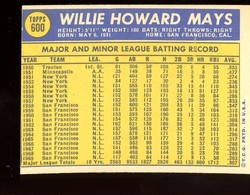 1970 Topps Baseball Card (#600) Of San Francisco Giants Hall-of-Fame Outfielder, Willie Mays. Card is EX with some corner wear and no creases. No writing, pin holes, tape stains. Ding in the lower left corner. See scan for centering.