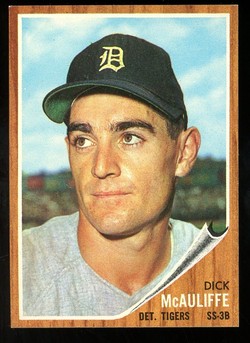 1962 Topps Baseball High Number Card (#527) of former Detroit Tigers Infielder, Dick McAuliffe.