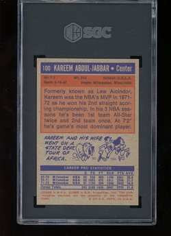 1972 Topps Basketball #100 Kareem Abdul-Jabbar SGC 7 Milwaukee Bucks HOF