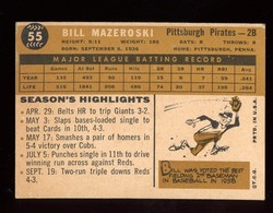 1960 Topps Baseball #055 Bill Mazeroski Pittsburgh Pirates HOF