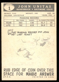 1959 Topps Football #001 Johnny Unitas Baltimore Colts HOF