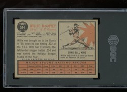 1962 Topps Baseball Short Print High Number Card (#544) of San Francisco Giants Hall-of-Fame 1st Baseman, Willie McCovey. Card is professionally graded 7 NM (Near Mint) by SGC.