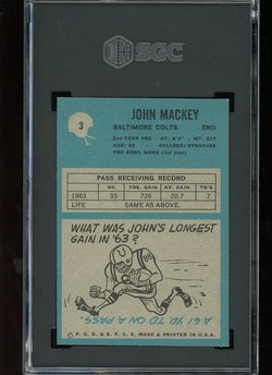 1964 Philadelphia Football #003 John Mackey Rookie SGC 8 Baltimore Colts HOF