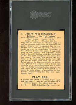 1940 Play Ball Baseball #1 Joe DiMaggio SGC 4 New York Yankees HOF