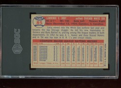 1957 Topps Baseball Card (#85) of Chicago White Sox / Cleveland Indians Hall-of-Fame Outfielder, Larry Doby. Card is graded 6 EX-MT (Excellent to Mint) by SGC.