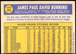 1970 Topps Baseball #403 Jim Bunning Philadelphia Phillies HOF