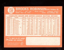 1964 Topps Baseball Card (#230) of Baltimore Orioles Hall-of-Fame 3rd Baseman, Brooks Robinson. Card is EX-MT with some corner wear and no creases. No writing, pin holes, tape stains. See scan for centering.