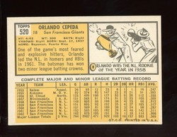 1963 Topps Baseball High Number Card (#520) of San Francisco Giants Hall-of-Fame 1st Baseman, Orlando Cepeda.