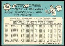 1965 Topps Baseball #500 Ed Mathews Milwaukee Braves HOF