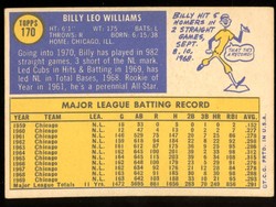 1970 Topps Baseball Card (#170) of Chicago Cubs Hall-of-Fame Outfielder, Billy Williams. Card is NM with some corner wear and a faint corner crease in the lower right. No writing, pin holes, tape stains. See scan for centering.