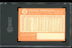 1964 Topps Baseball Card (#230) of Baltimore Orioles Hall-of-Fame 3rd Baseman, Brooks Robinson. Card is graded 7 NM (Near Mint) by SGC.