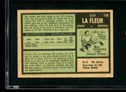 1971-1972 O-Pee-Chee OPC Hockey Rookie Card (#148) of Montreal Canadiens Legendary Hall-of-Fame Center, Guy LaFleur. Card is professionally graded 4.5 VG-EX+ (Very Good to Excellent Plus) by SGC.