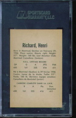 1962 - 1963 Parkhurst Hockey Card (#38) of Montreal Canadiens Hall-of-Fame Center, Henri Richard. Card is professionally graded 7.5 NM+ (Near Mint Plus) by SGC.
