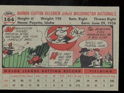 1956 Topps Baseball #164 Harmon Killebrew Washington Nationals HOF - Grey
