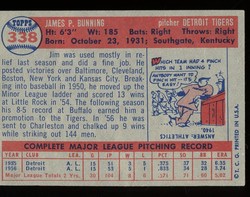1957 Topps Baseball #338 Jim Bunning Rookie Detroit Tigers HOF Mid Series