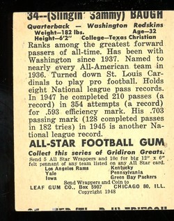 1948 Leaf Football #034 Sammy Baugh Rookie Washington Redskins HOF