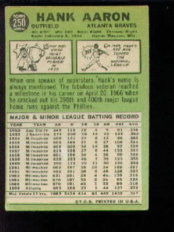 1967 Topps Baseball #250 Hank Aaron Atlanta Braves HOF